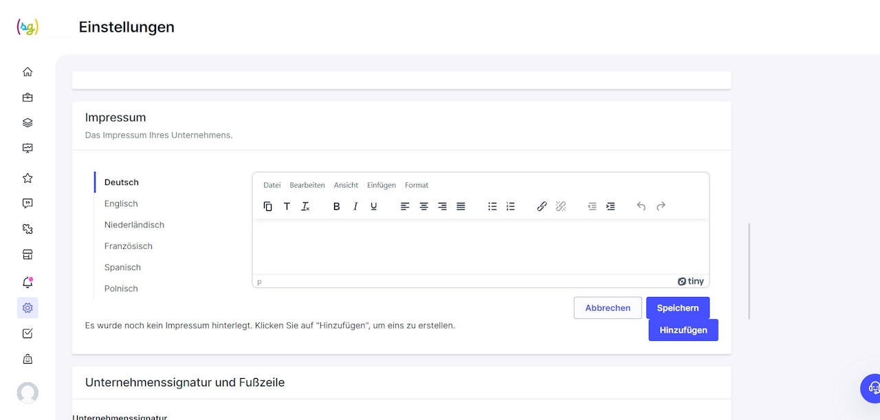 Das Impressum lässt sich in verschiedenen Sprachen einstellen und ist zukünftig für Bewerber auf dem Jobportal ersichtlich.