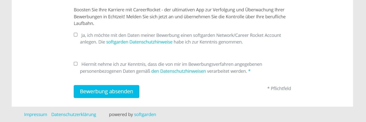 Im letzten Schritt bestätigt der Bewerber die Datenschutzerklärung und sendet seine Bewerbung ab.