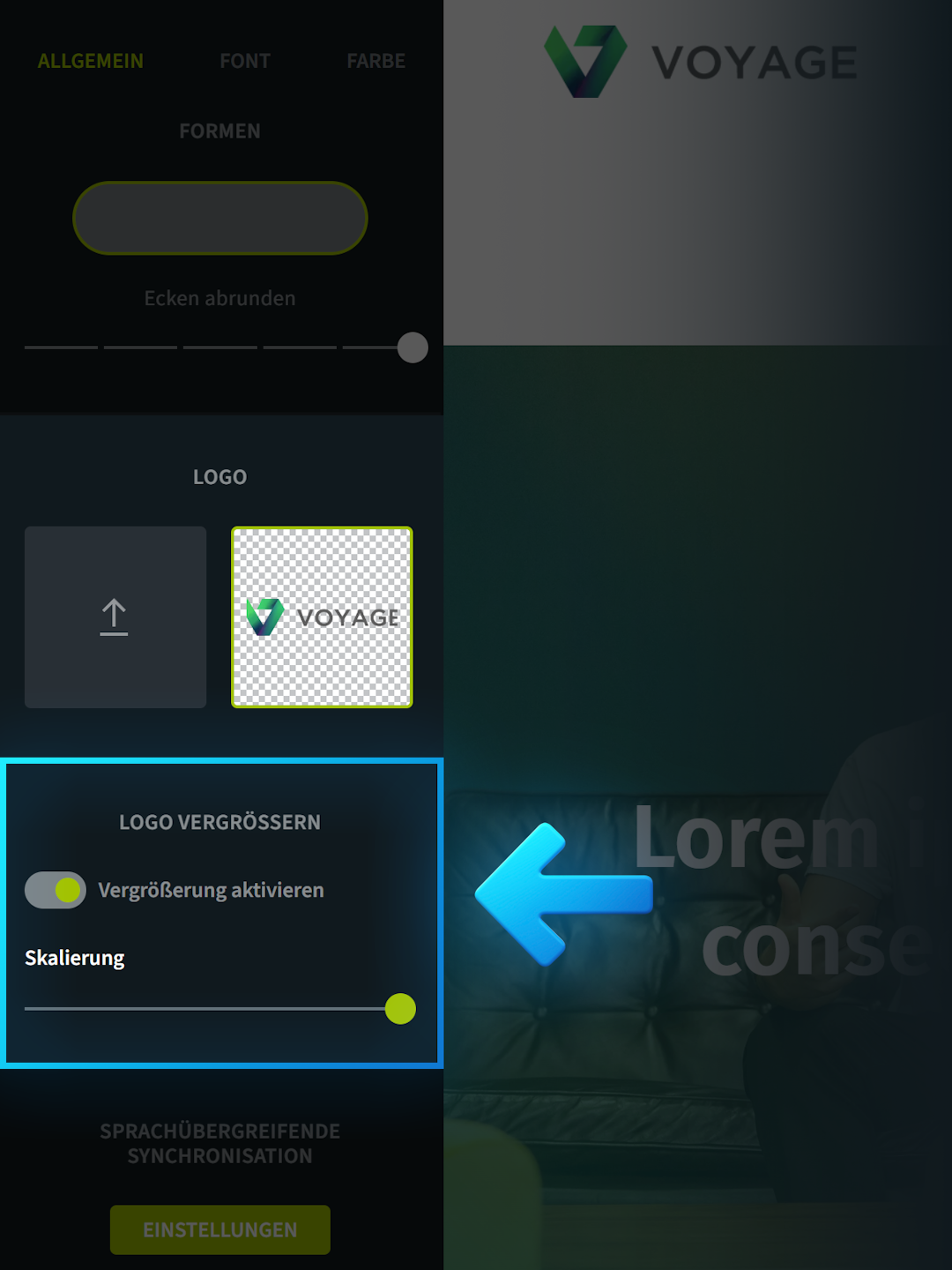 Manchmal ist es notwendig, das Logo zu vergrößern. Dies gilt insbesondere für extrem breite oder detaillierte Logos.