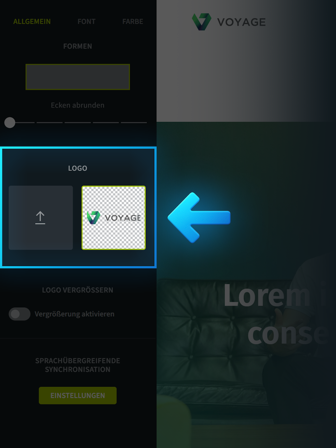 Wenn Sie sich später für den transparenten Header entscheiden wollen, muss das Logo auf einem transparenten Hintergrund und im PNG-Format hochgeladen werden. Dies gilt auch, wenn der Header eine andere Farbe als Weiß haben soll.