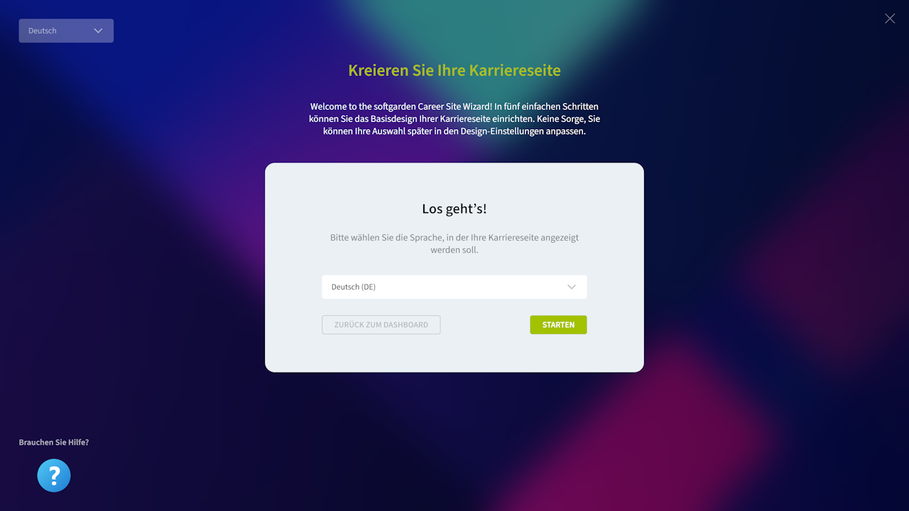 Wählen Sie zuerst die Standardsprache Ihrer Karriereseite.