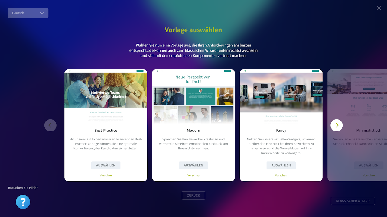 Im nächsten Schritt wählen Sie eine der fünf Vorlagen aus.