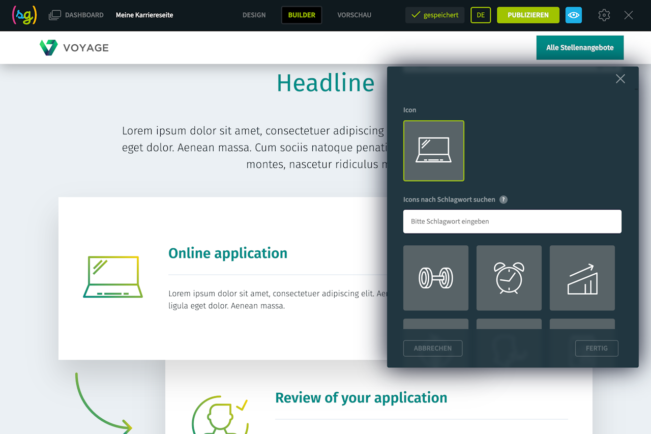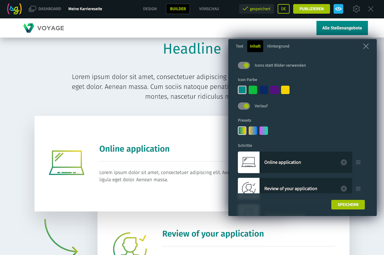 Wenn Sie sich für die integrierten Icons entscheiden, können Sie den Icons eine Farbe oder einen optinalen Farbverlauf zuweisen.
