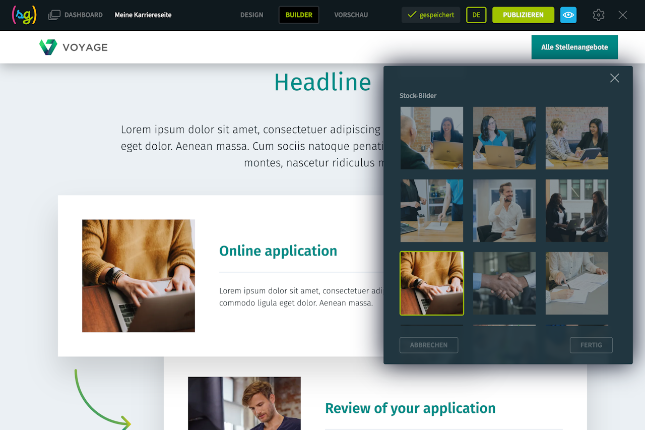 Als Nächstes können Sie Ihr eigenes Bild hochladen (quadratisch) oder eine Vorauswahl an Bildern verwenden. Alternativ können Sie auch auf die Icon-Bibliothek zugreifen.