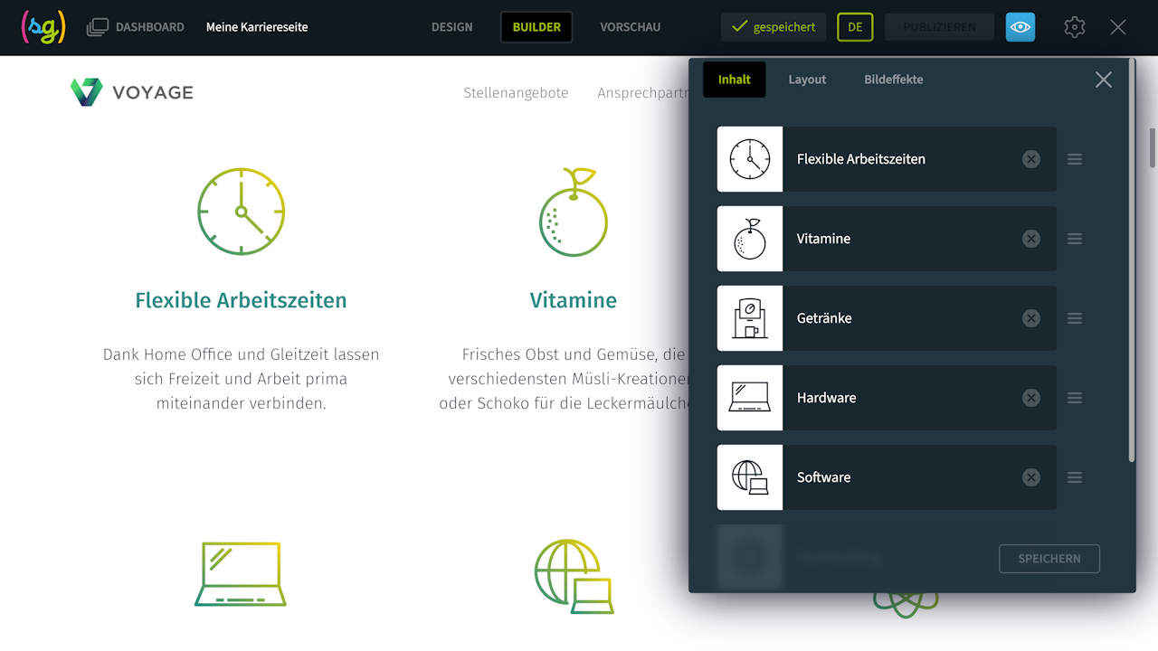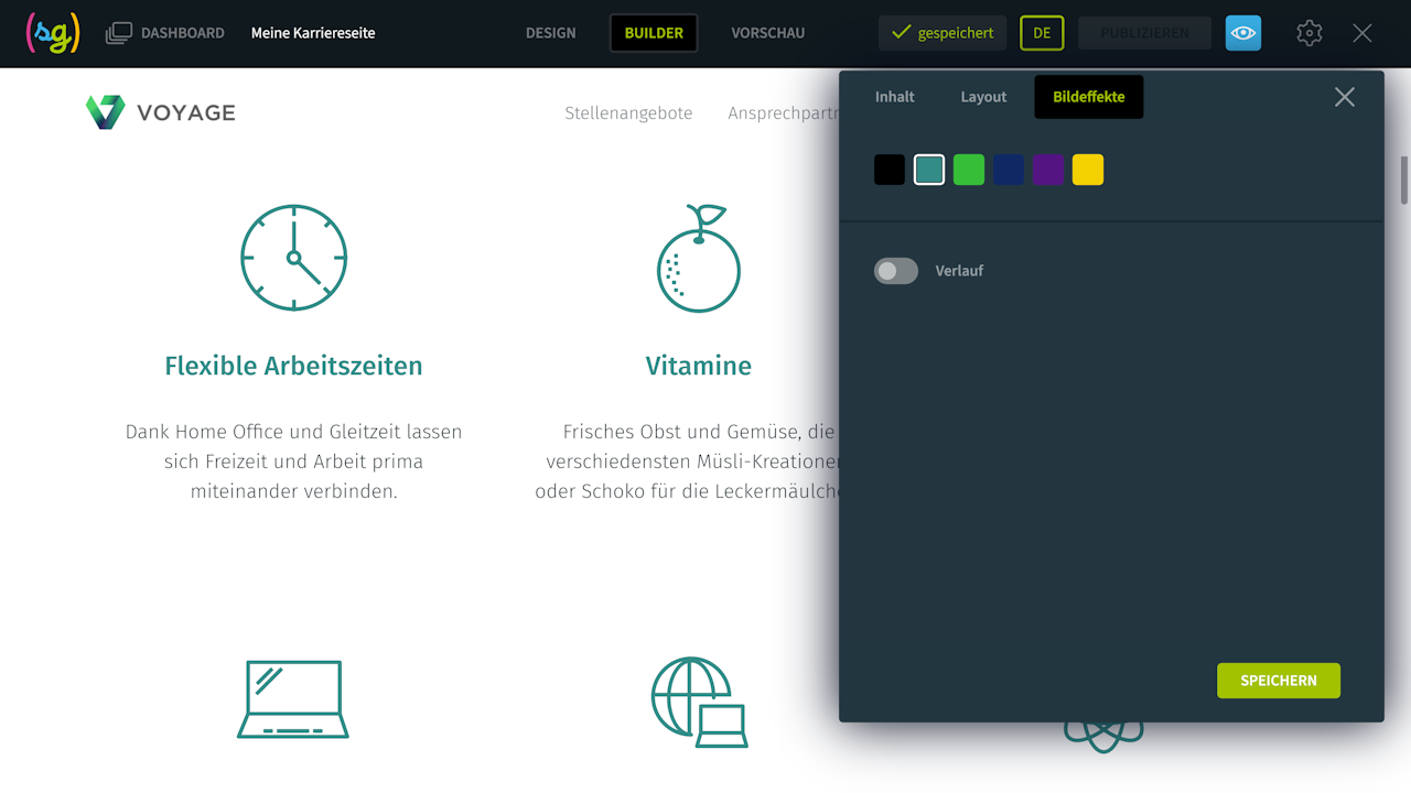 Standardmäßig sind die Icons mit einem Farbverlauf versehen. Sie können einen neuen Farbverlauf erstellen, der zu Ihrem Corporate Design passt, und diesen den Icons zuweisen.
