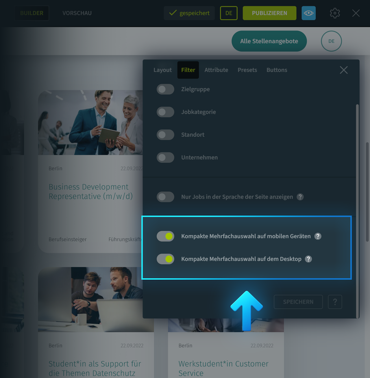 Einstellungen für Mehrfahlauswahl-Filter