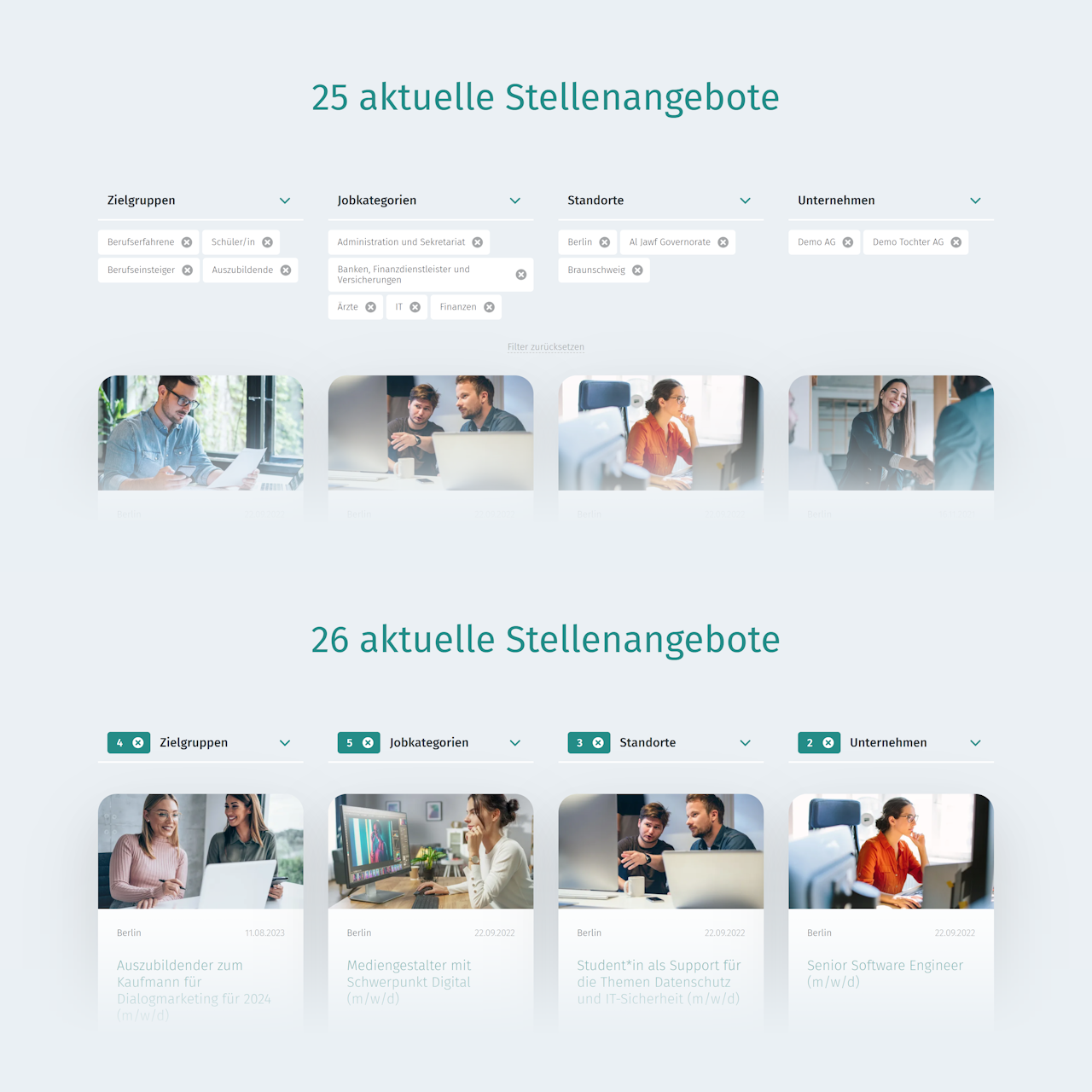 In Release 32 wurden die Job-Filter dahingehend überarbeitet, daß der Bewerber nun innerhalb einer Kategorie mehrere Einträge gleichzeitig auswählen kann.