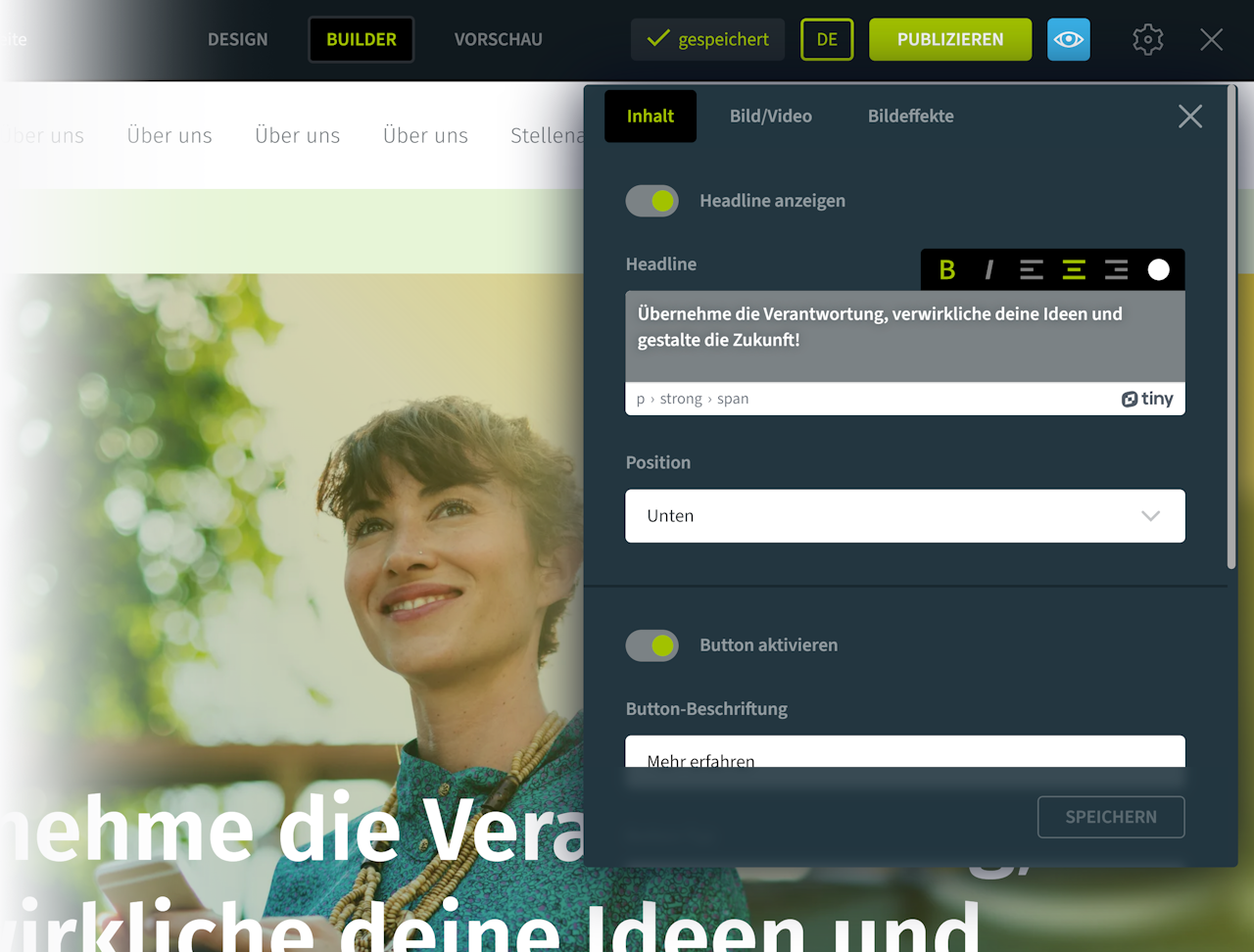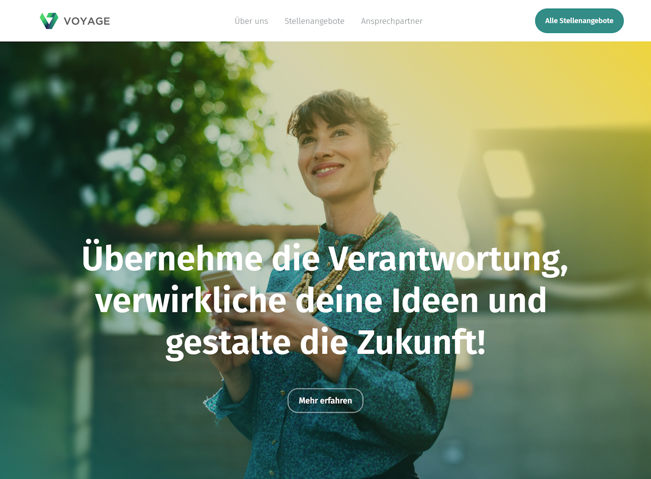 Generell empfehlen wir, Ihre Karriereseite mit einem Keyvisual zu beginnen und es mit einem starken Bild oder Video zu besetzen. So können Ihre Bewerber sofort eine emotionale Verbindung zu Ihrem Unternehmen aufbauen.