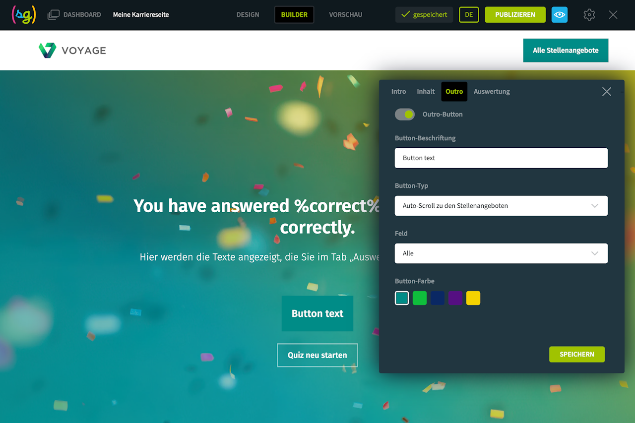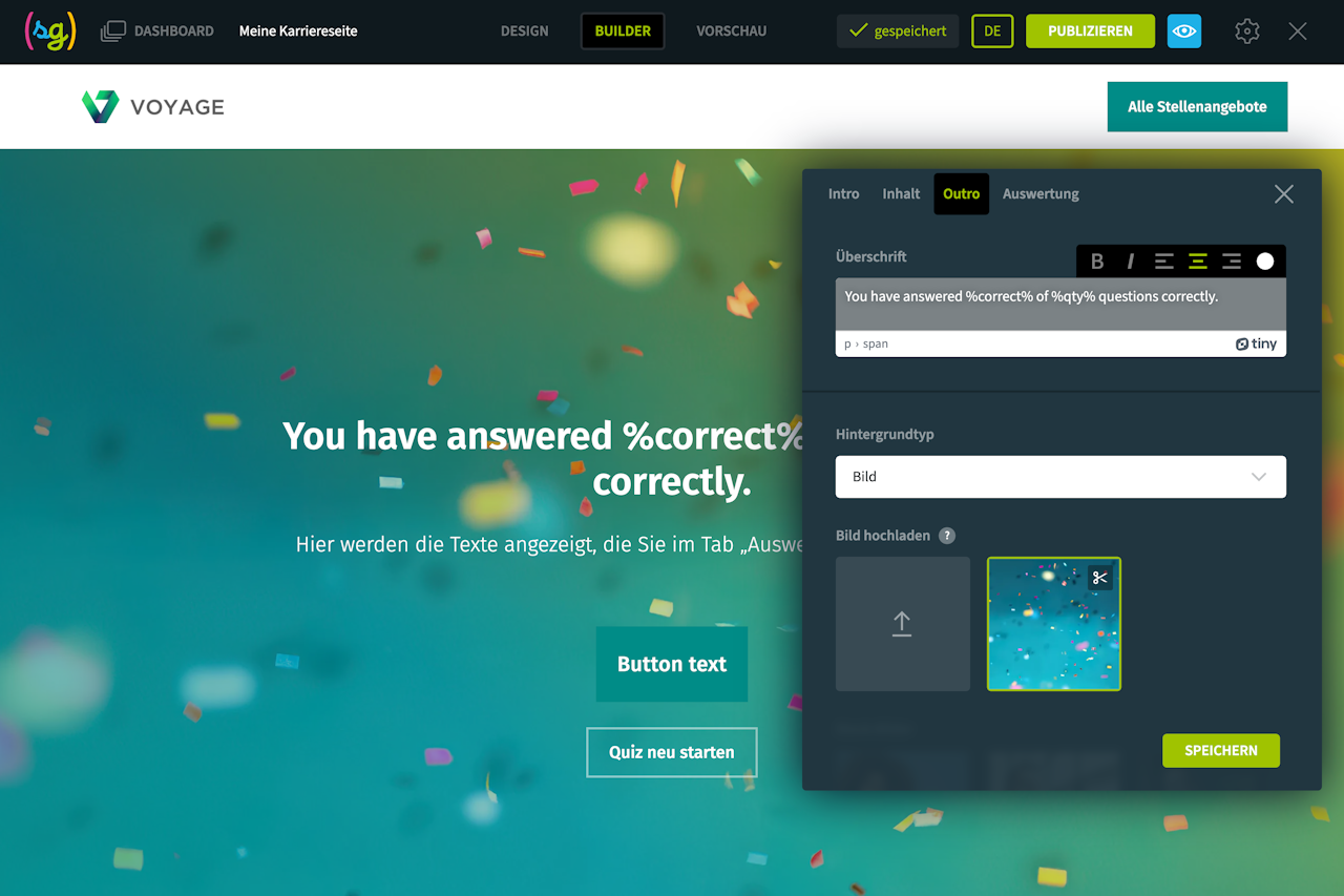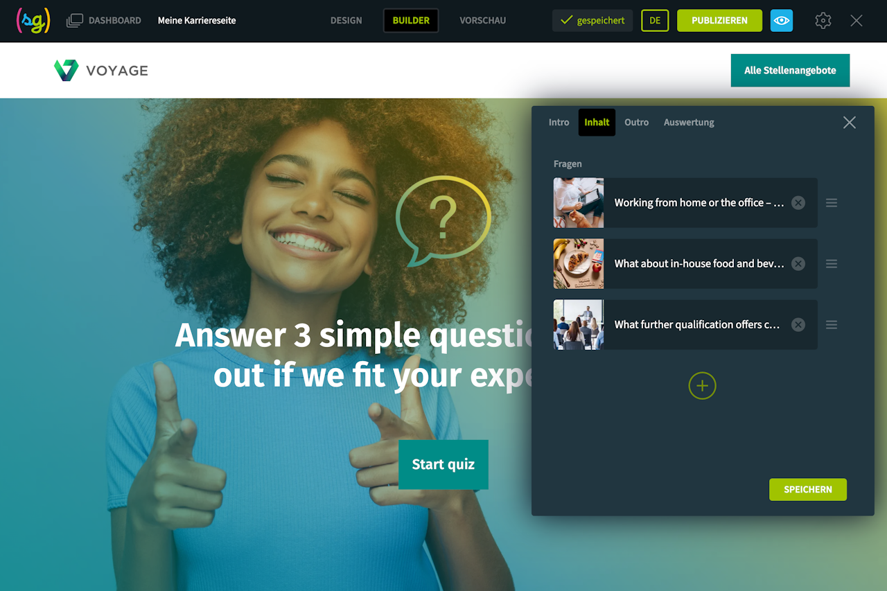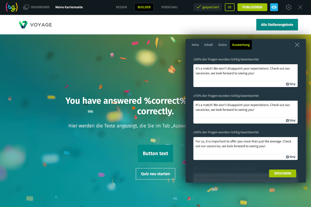 Die Quiz-Komponente ist eine großartige Möglichkeit, Ihren Kandidaten wichtige Themen auf eine eher untypische und unterhaltsame Weise näher zu bringen.