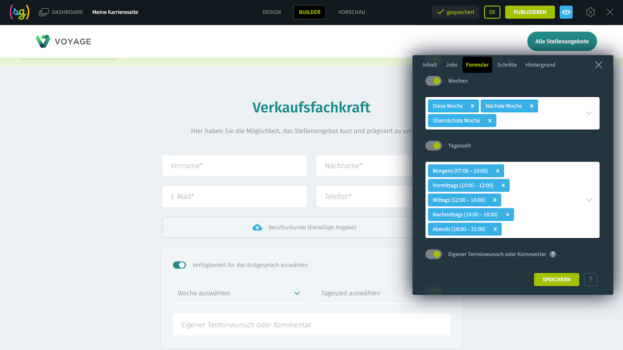 Sie können auch ein Kommentarfeld aktivieren, damit die Bewerber z. B. ihre eigene Zeit vorschlagen können.