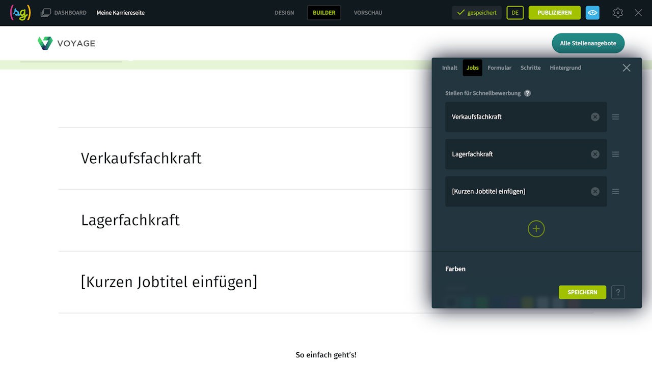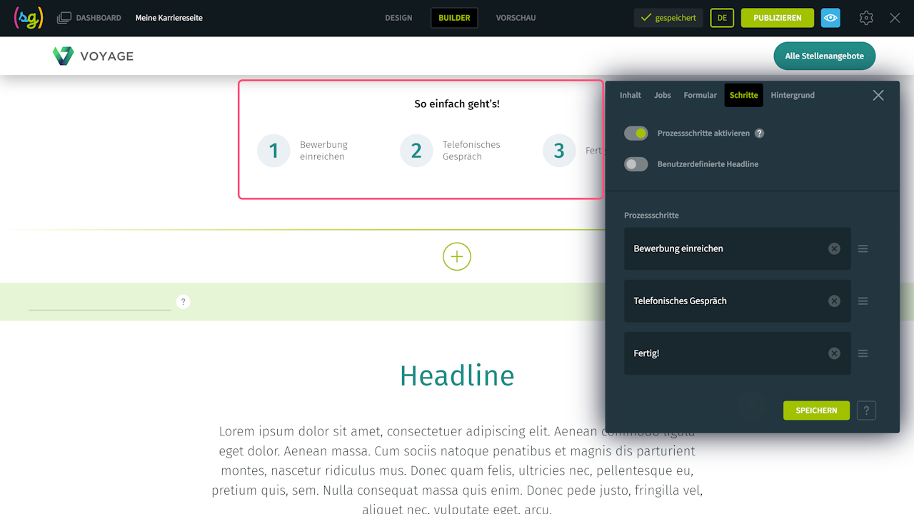 Zeigen Sie Ihren Bewerbern, wie einfach das Bewerbungsverfahren ist, indem Sie die Schritte aktivieren. Erklären Sie Ihren Bewerbern, welche Schritte die Bewerbung umfasst.
