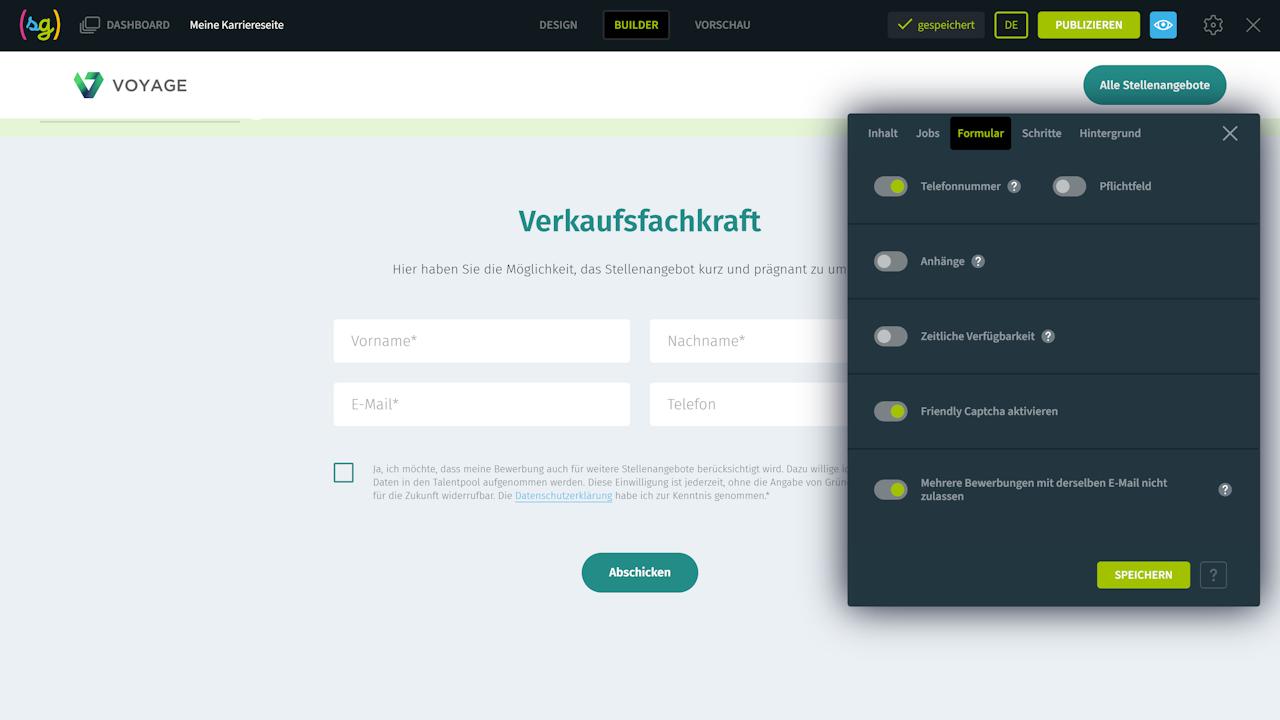 Die Schnellbewerbung besteht im Wesentlichen aus einem vereinfachten Bewerbungsformular, das nach Ihren Bedürfnissen konfiguriert werden kann.