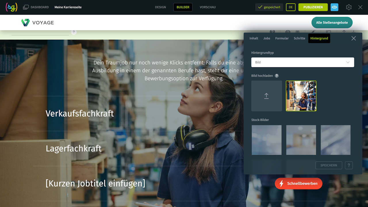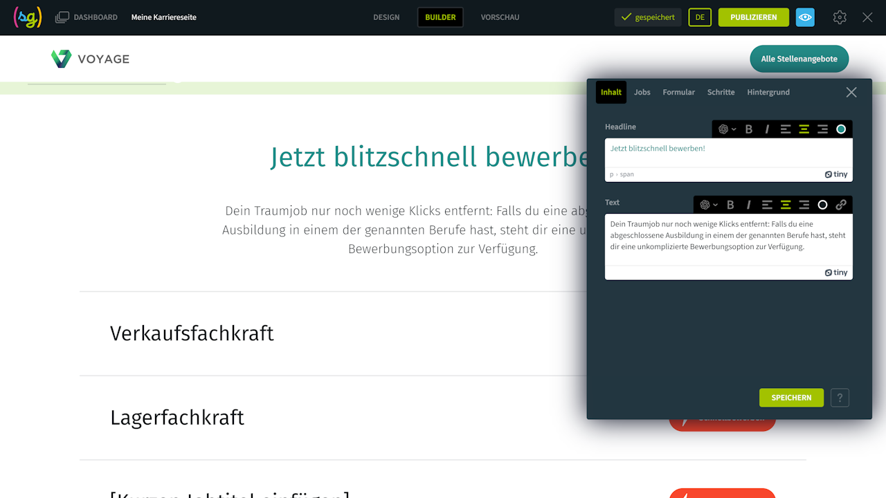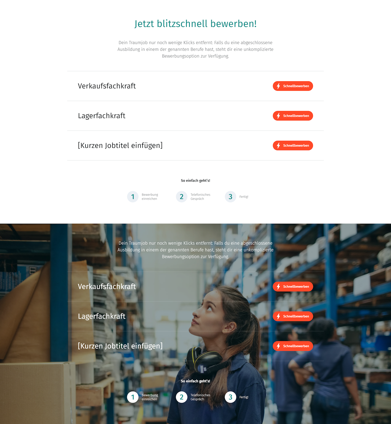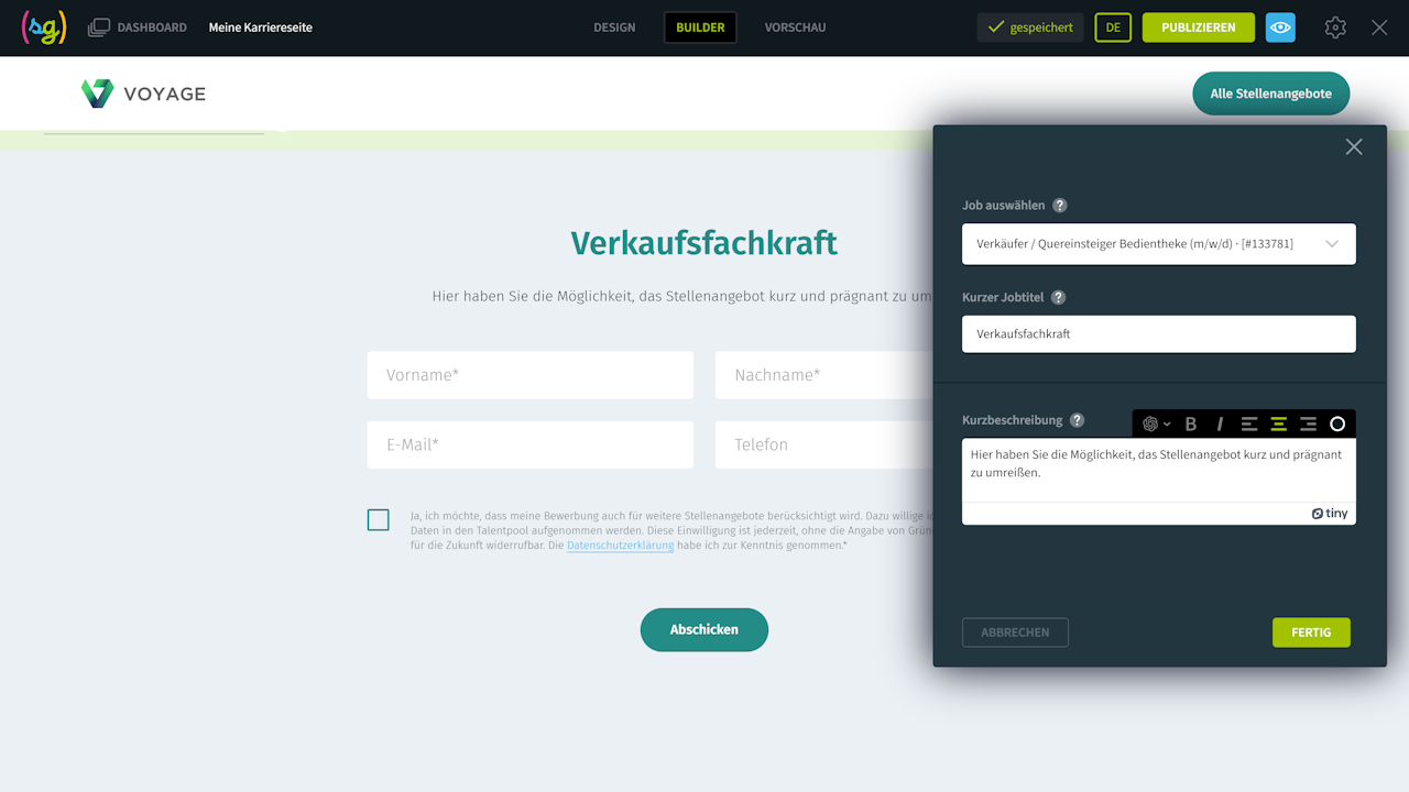 Konzeptbedingt wird in der Schnellbewerbung nicht die vollständige Jobbeschreibung angezeigt. Sie können jedoch optional eine kurze Beschreibung in das Overlay einfügen.