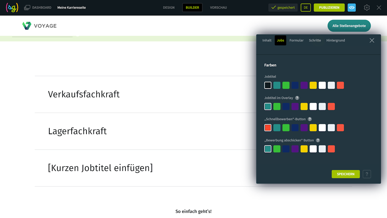 Die Farbe des Jobtitels im offenen Overlay des Bewerbungsformulars„Schnellbewerben“-Button