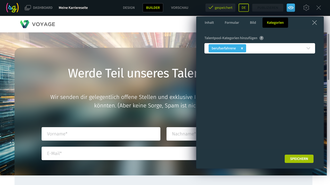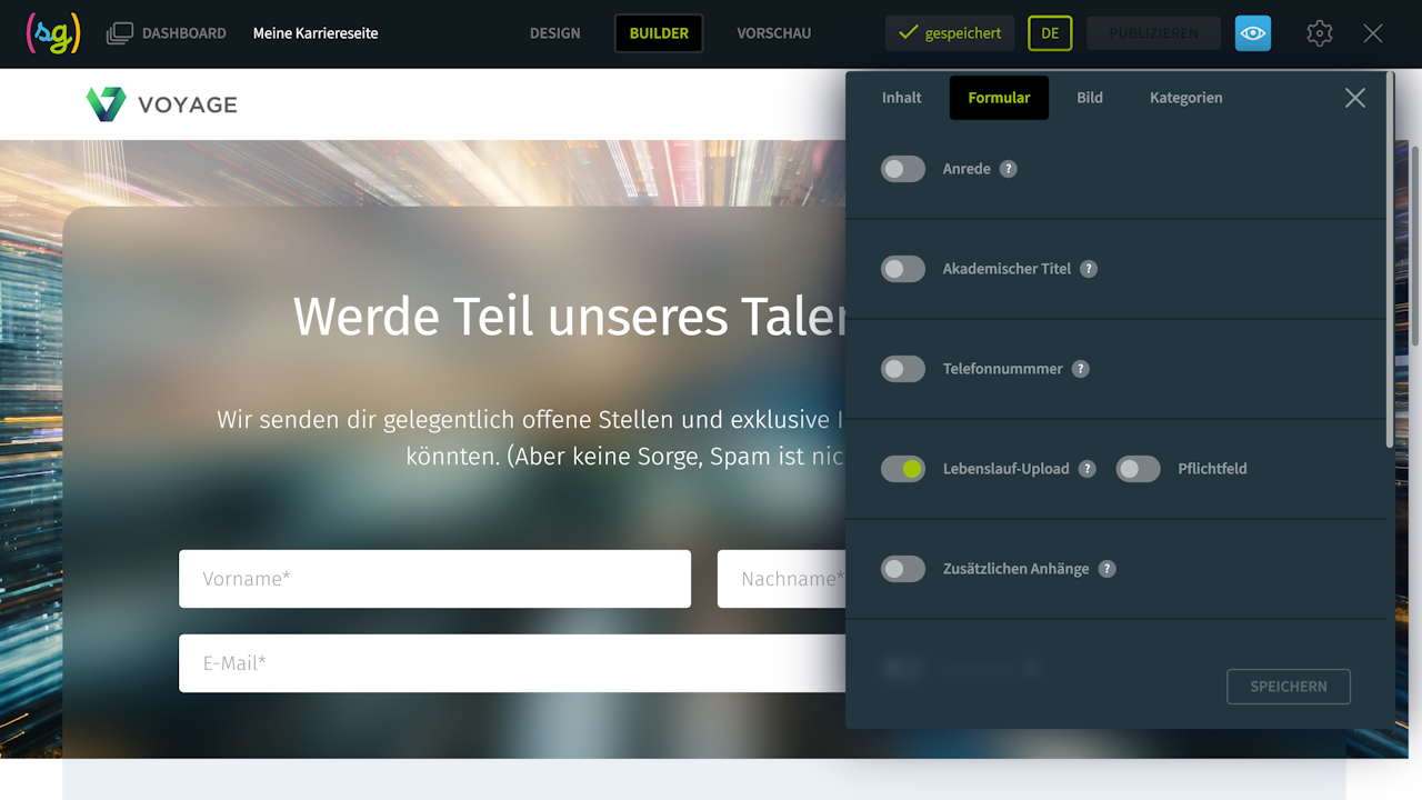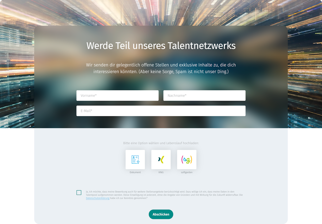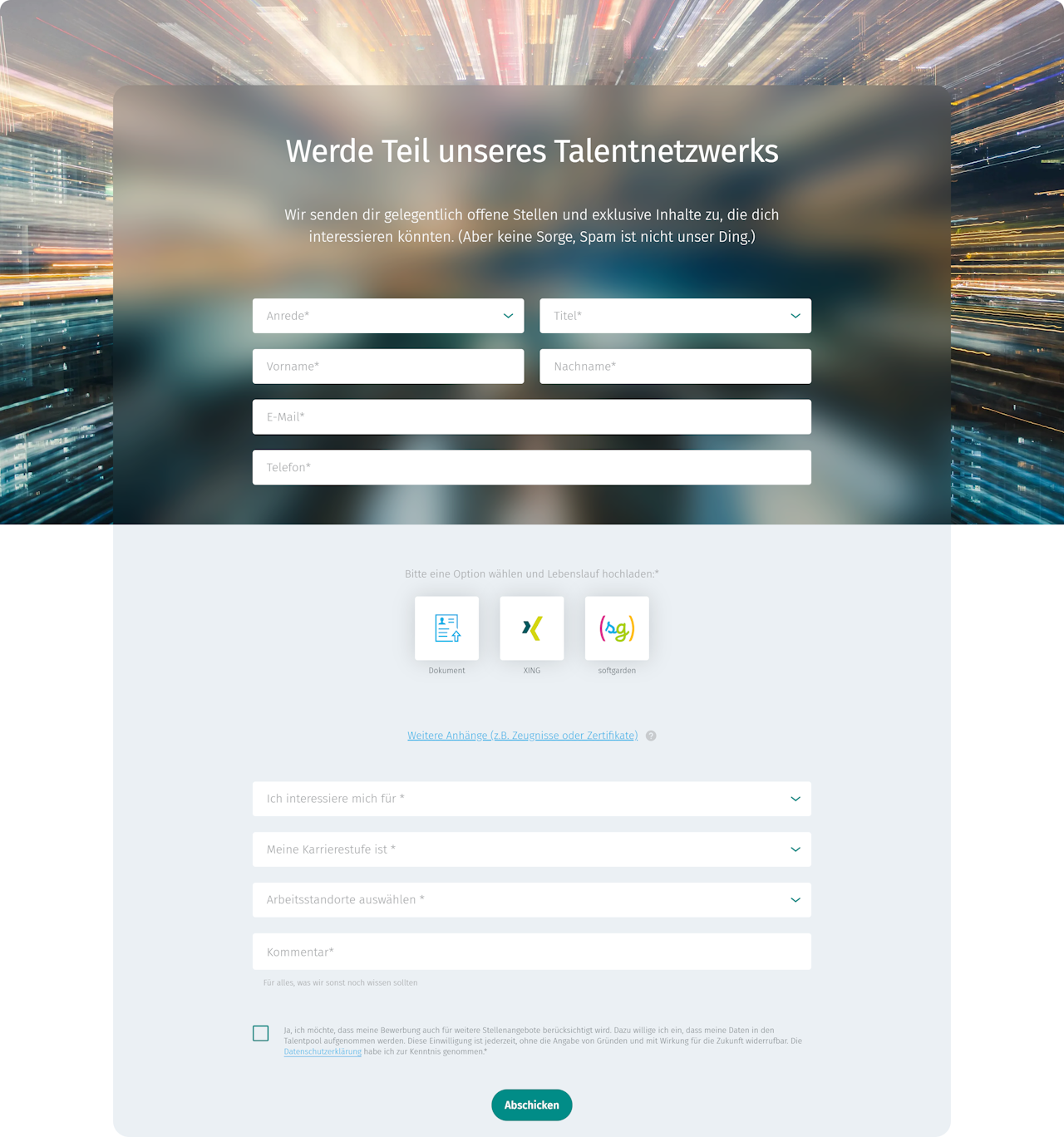 Die Talent Pool Bewerbung ist im Prinzip ein Bewerbungsformular, das nach Ihren Bedürfnissen konfiguriert werden kann.