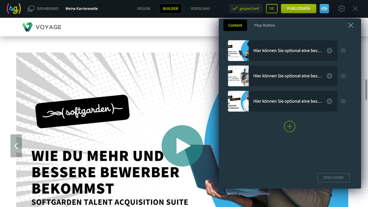 Zusätzlich können Sie auch die Farbe des Play-Buttons einstellen. Die Farben werden im Tab „Design“ definiert.