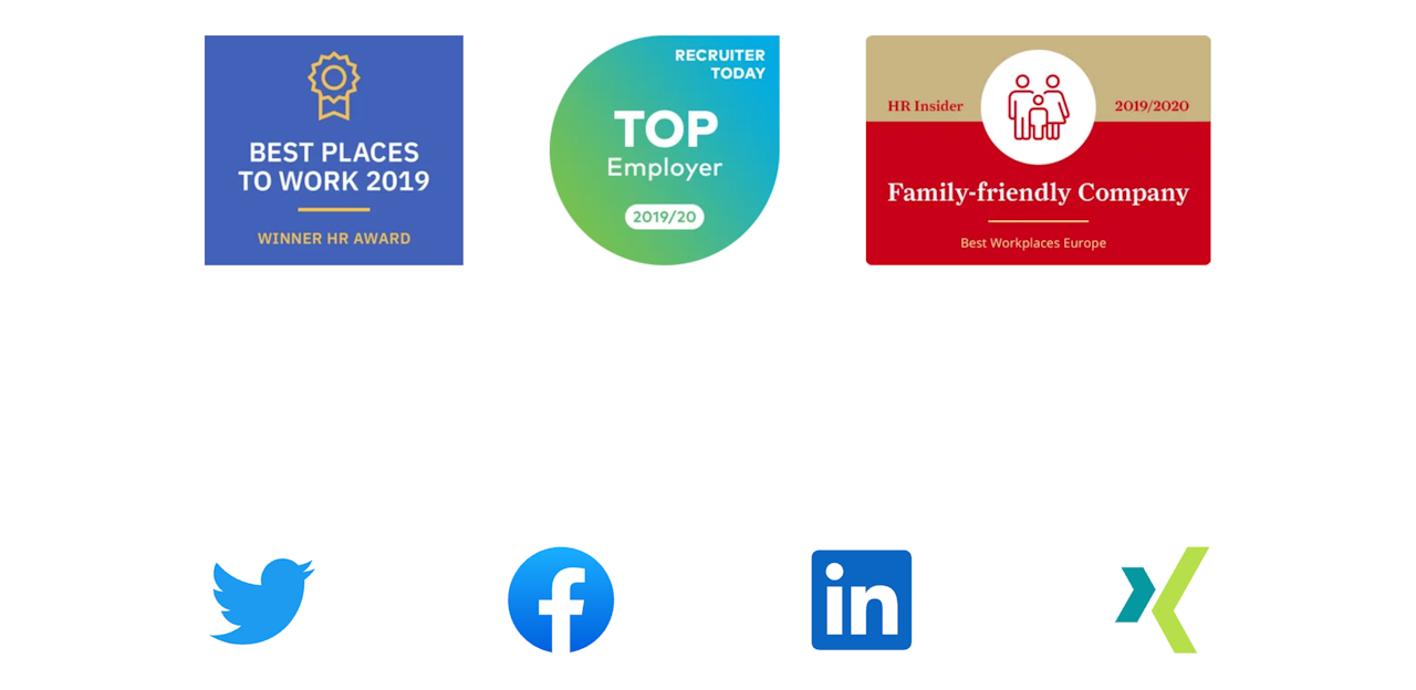 Diese beiden Komponenten werden häufig zur Vervollständigung der Karriereseite verwendet und sollen den Bewerber über mögliche HR-Auszeichnungen Ihres Unternehmens informieren und ihn auf Ihre Seiten in beliebten sozialen Netzwerken verweisen.