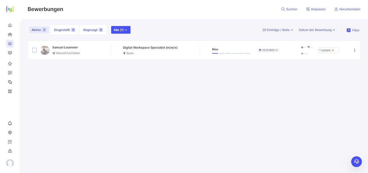 In der Bewerberliste im Menüpunkt "Bewerbungen" können Sie jederzeit alle aktiven Bewerbungen einsehen.
