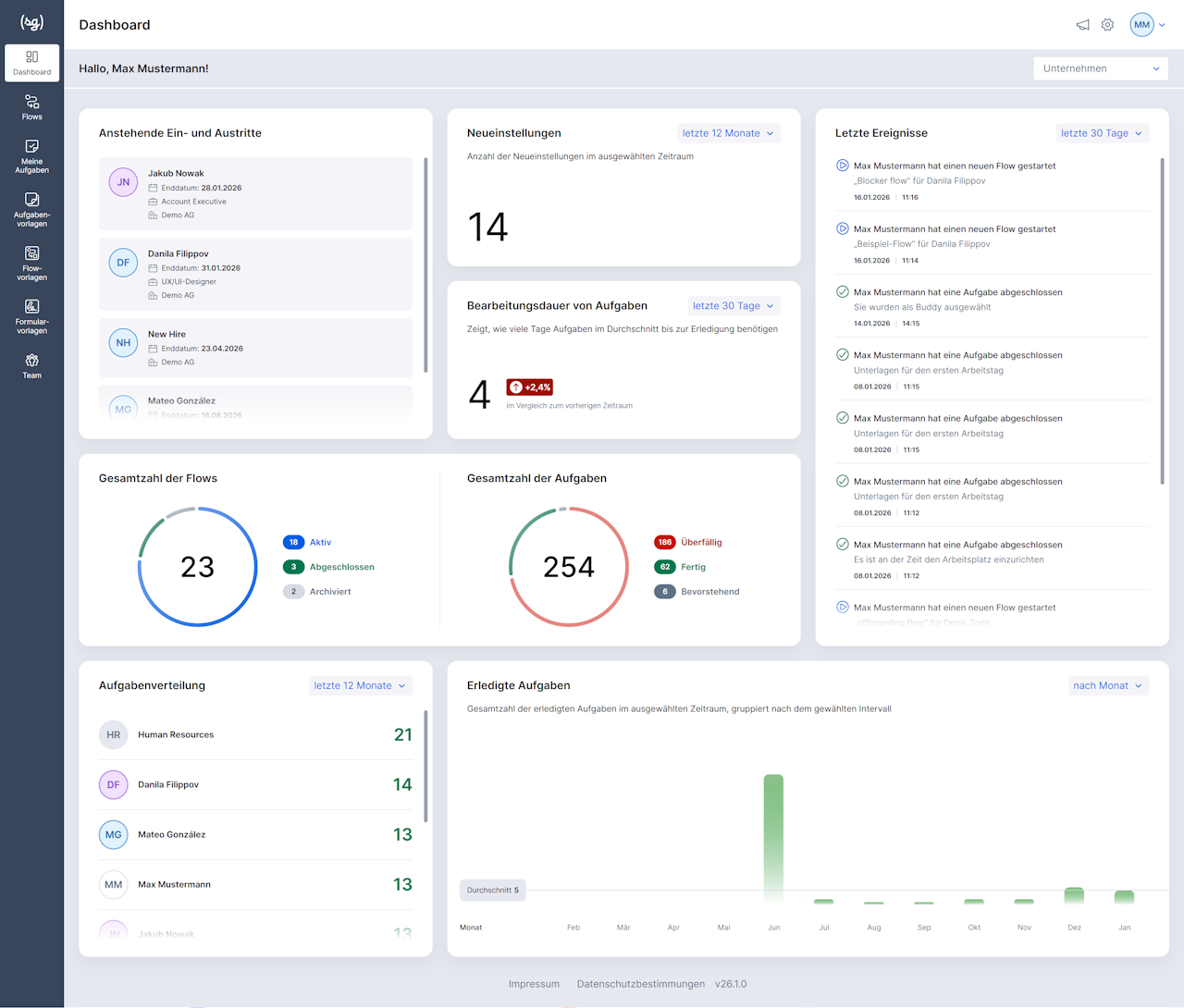 Ein neues Dashboard, das alle relevanten Onboarding-Kennzahlen in einer übersichtlichen Echtzeitansicht bündelt, sowie erweiterte Rollen und Berechtigungen, mit denen Admins Zugriffe und Verantwortlichkeiten nun noch granularer steuern können. Ziel ist mehr Transparenz, bessere Kontrolle und effizienteres Arbeiten im Onboarding-Alltag.