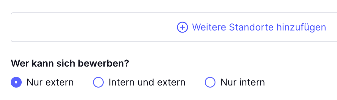 Mit der Definition der Zielgruppe geben Sie an, ob ausgeschriebene Jobs nur extern, nur intern oder über beide Kanäle sichtbar sein sollen.