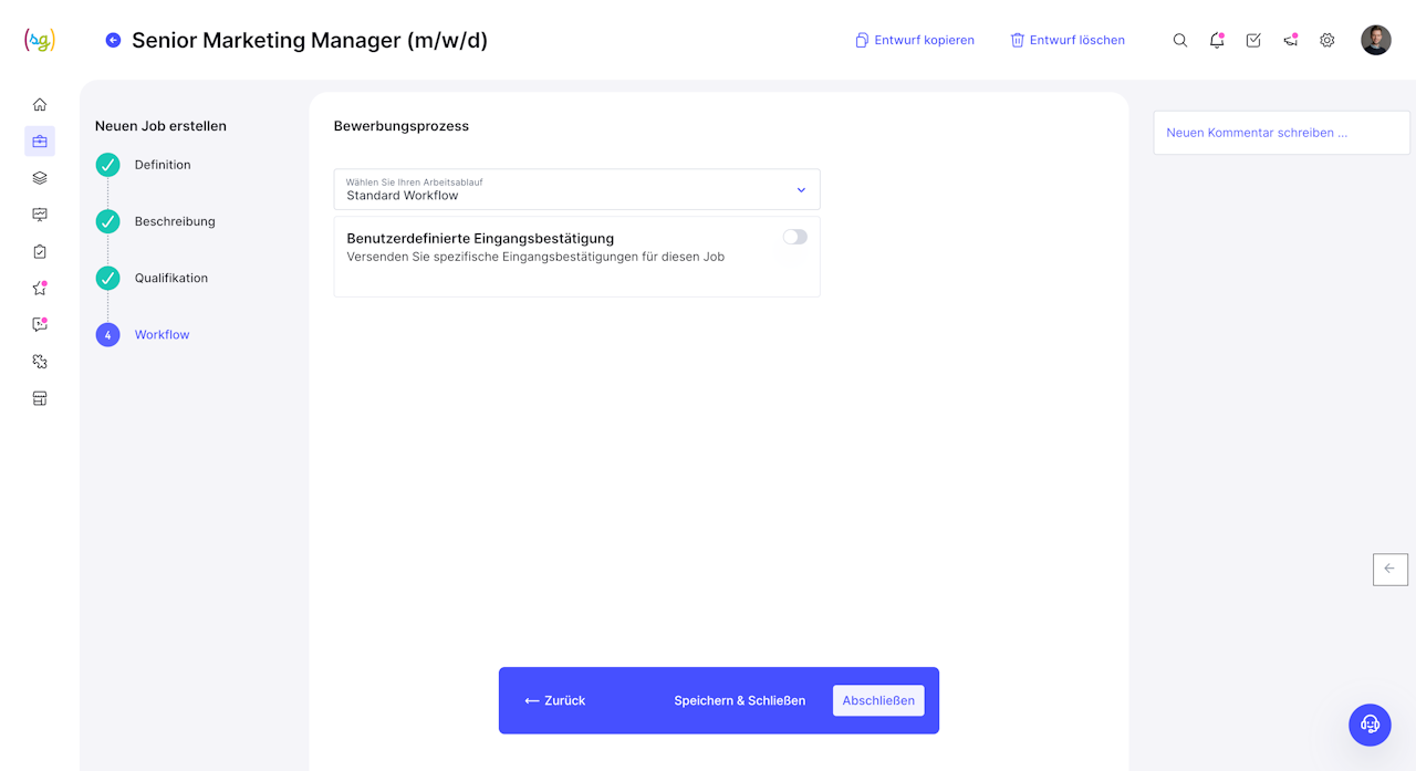 Hier können Sie den von Ihnen gewünschten Bewerbungsprozess auswählen.