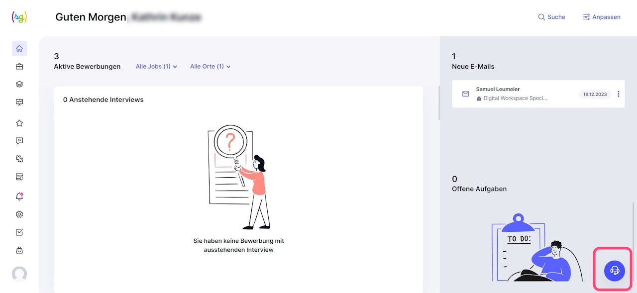 Über unseren Livechat. Dieser wird Ihnen schon beim Login am unteren rechten Bildschirmrand mit einem blauen Button angezeigt.