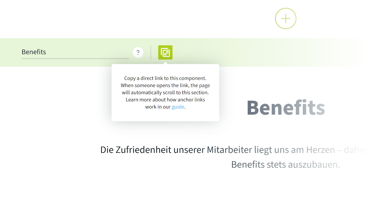 For example, would you like to link directly to your benefits section in a social media post? Then open the corresponding component in the Builder and click on: