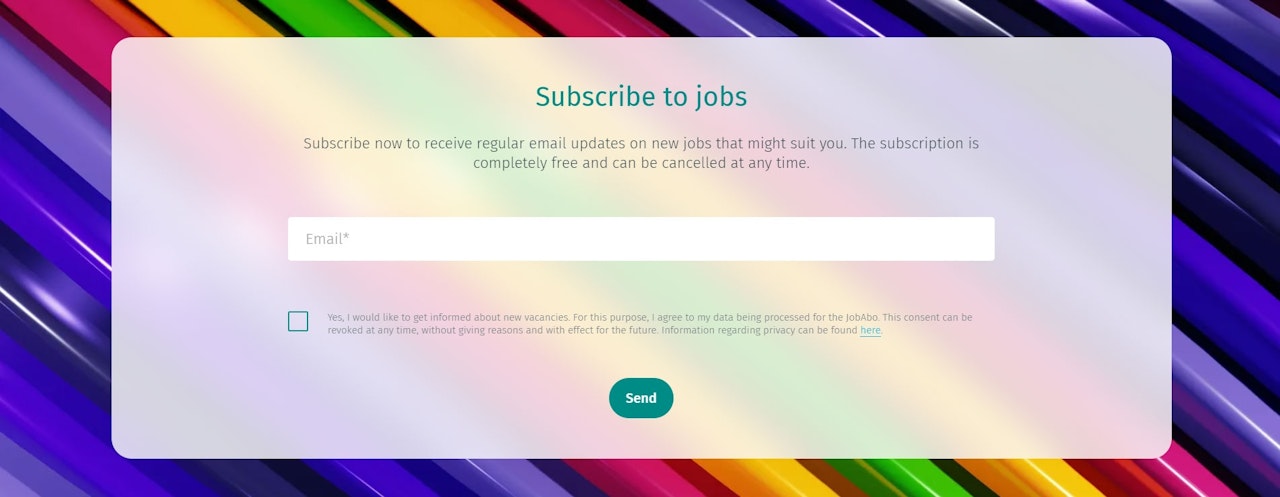 In Release 30, a new component was added that allows your prospects to subscribe to a mailing list. As soon as a new job is posted and the job category and/or target group match the selected setting of the prospect, this person will be notified by email about the new job.