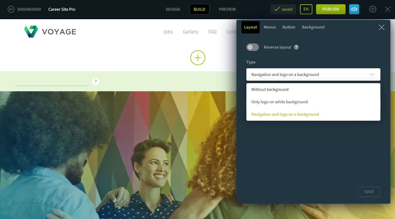 The navigation is the first component on your career page and offers a range of configuration options.