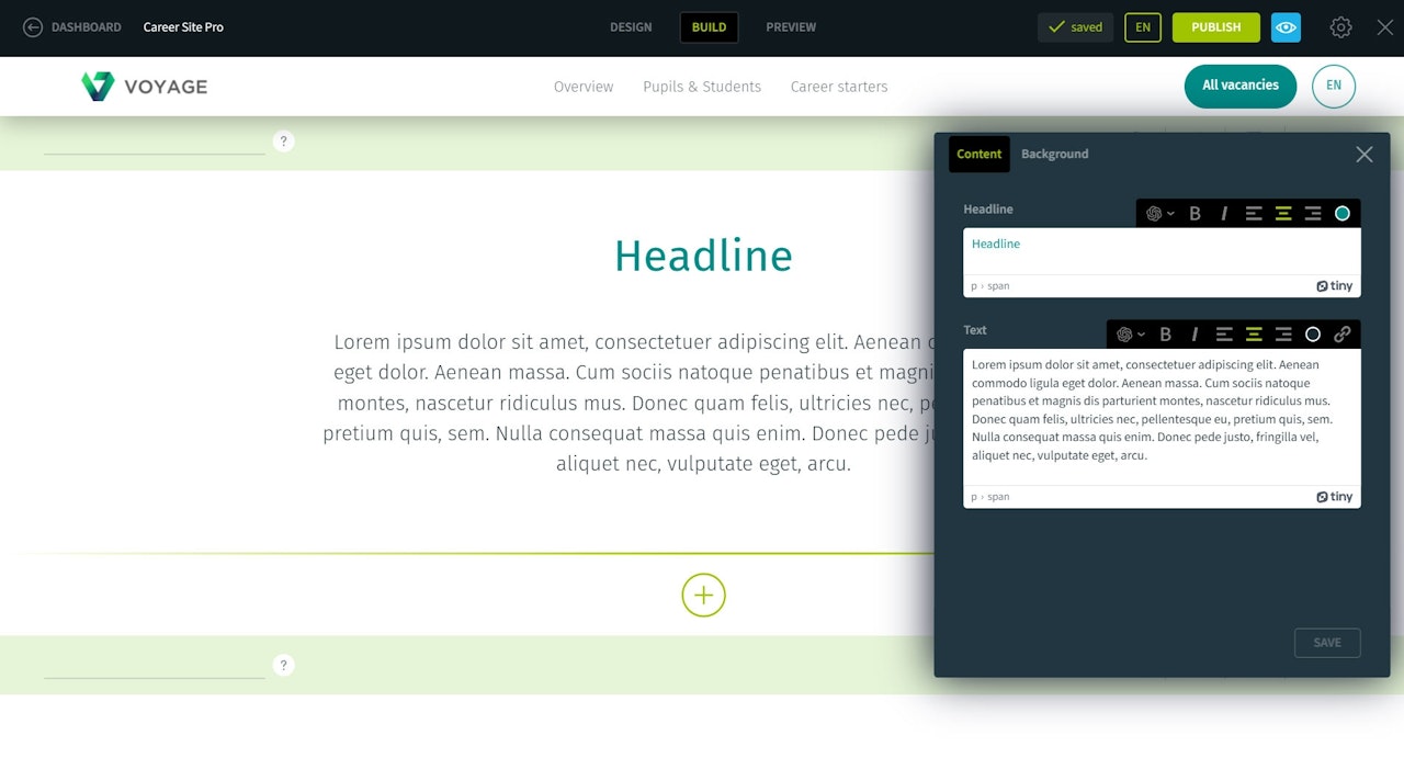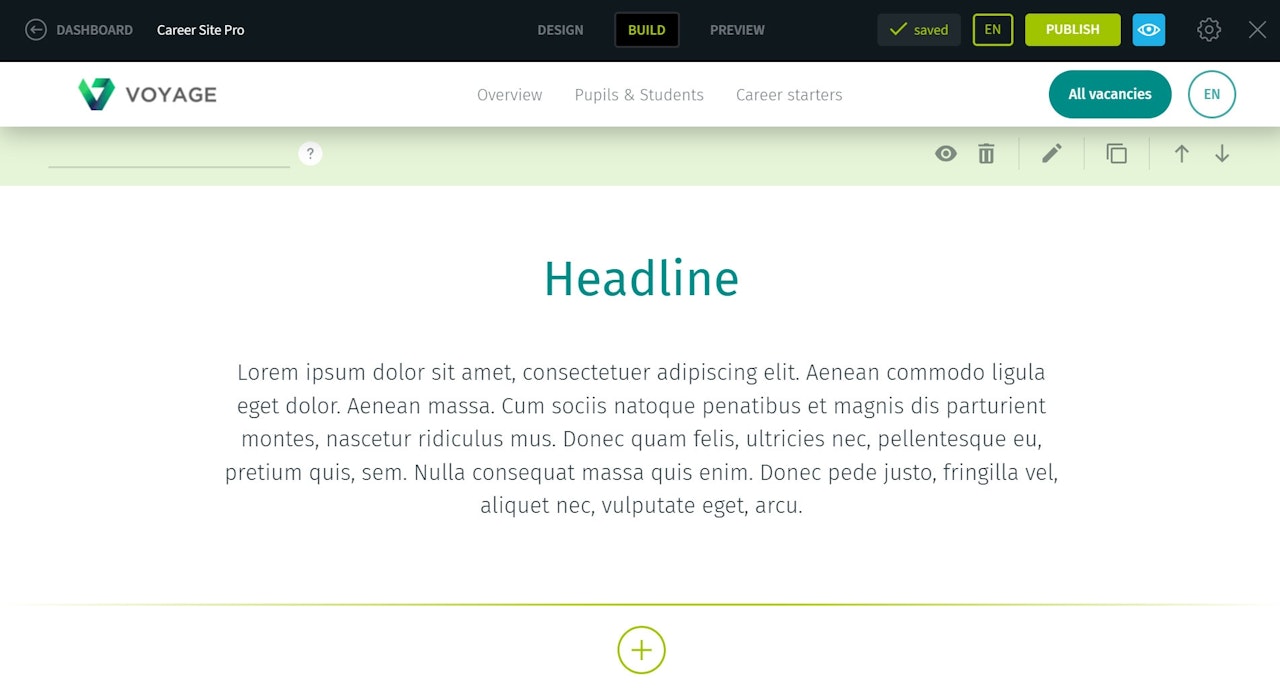 Headline & Text is a bread-and-butter component and is typically used multiple times on your career page.