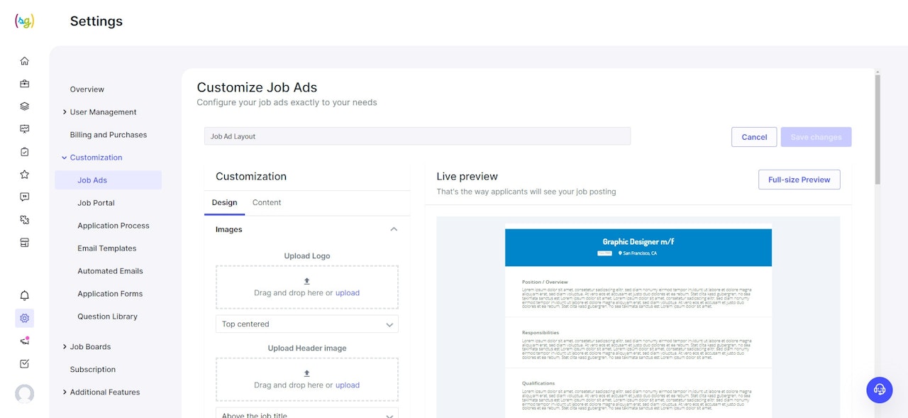 Customize Job Ad Layout