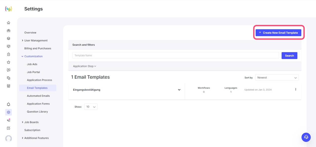 In the settings under Customization, you can manage the email templates. Some templates are already predefined and can be individually adjusted if needed.