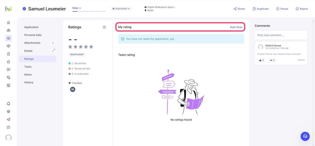 To categorize applicants more easily for processing, you have the option to rate them in the applicant folder.