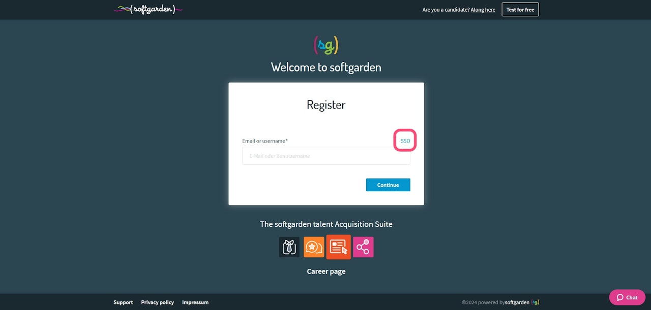 With the simplified Single Sign-On (SSO) login, you connect your corporate network. The common Single Sign-On providers using the technology standard "SAML 2.0" are supported (Microsoft ADFS, Google, or Office 365). Your employees can then log in with their company account and remember fewer passwords. For setup, please contact your account manager or support at support@softgarden.de.