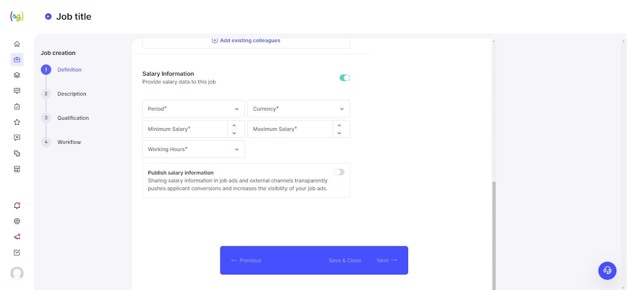 Assemble your team for the job. Add the employees who should have access to job activities and applications and who are allowed to manage them according to role settings.
